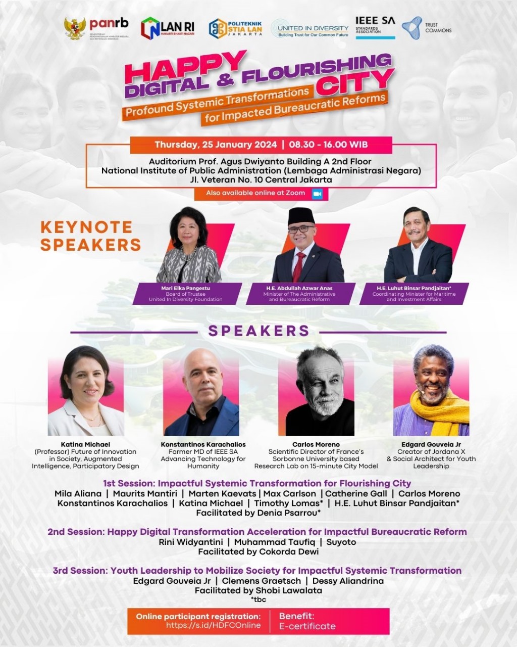 The National Institute of Public Administrastion (LAN) in collaboration with National Institute of Public Administrastionthe Ministry of State Apparatus Empowerment and Bureaucratic Reform (KemenPANRB), United In Diversity Foundation (UID), Trust Commons, and the IEEE Standards Association held an International Dialogue entitled "Happy Digital and Flourishing City Forum: Profound Systemic Transformations for Impacted Bureaucratic Reforms".